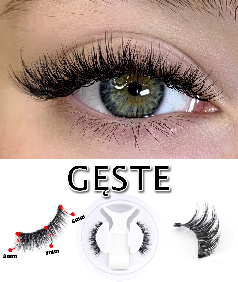 Dzięki specjalnej technologii magnetycznej możesz uzyskać efekt długich, gęstych i pięknie podkreślonych rzęs w kilka sekund, bez kleju, bez eyelinera i bez doświadczenia.